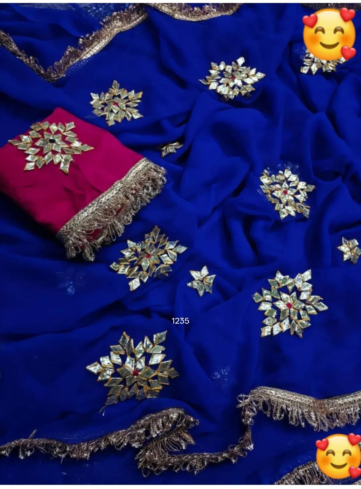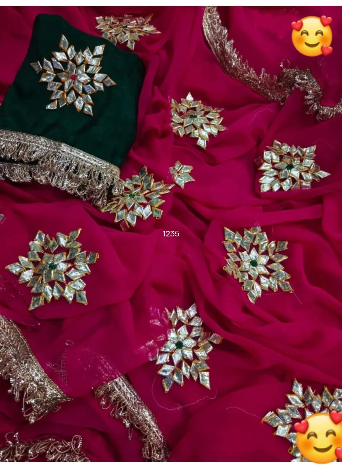 *Fabric:* Soft Georgette Saree With Simple Sober Gota Flower Work On Full Saree & Sabhyasachi Lace Border (5.5 Meter)