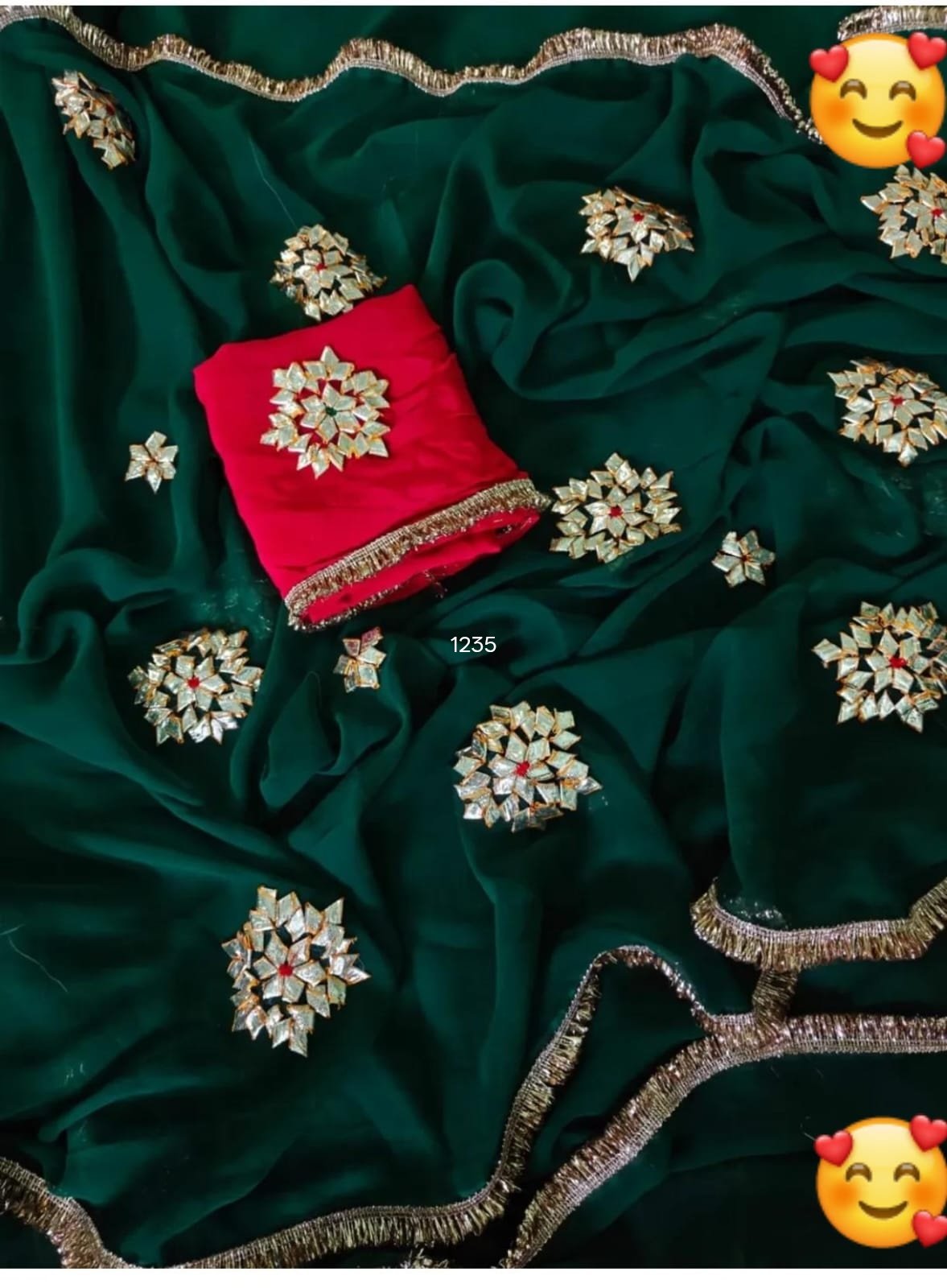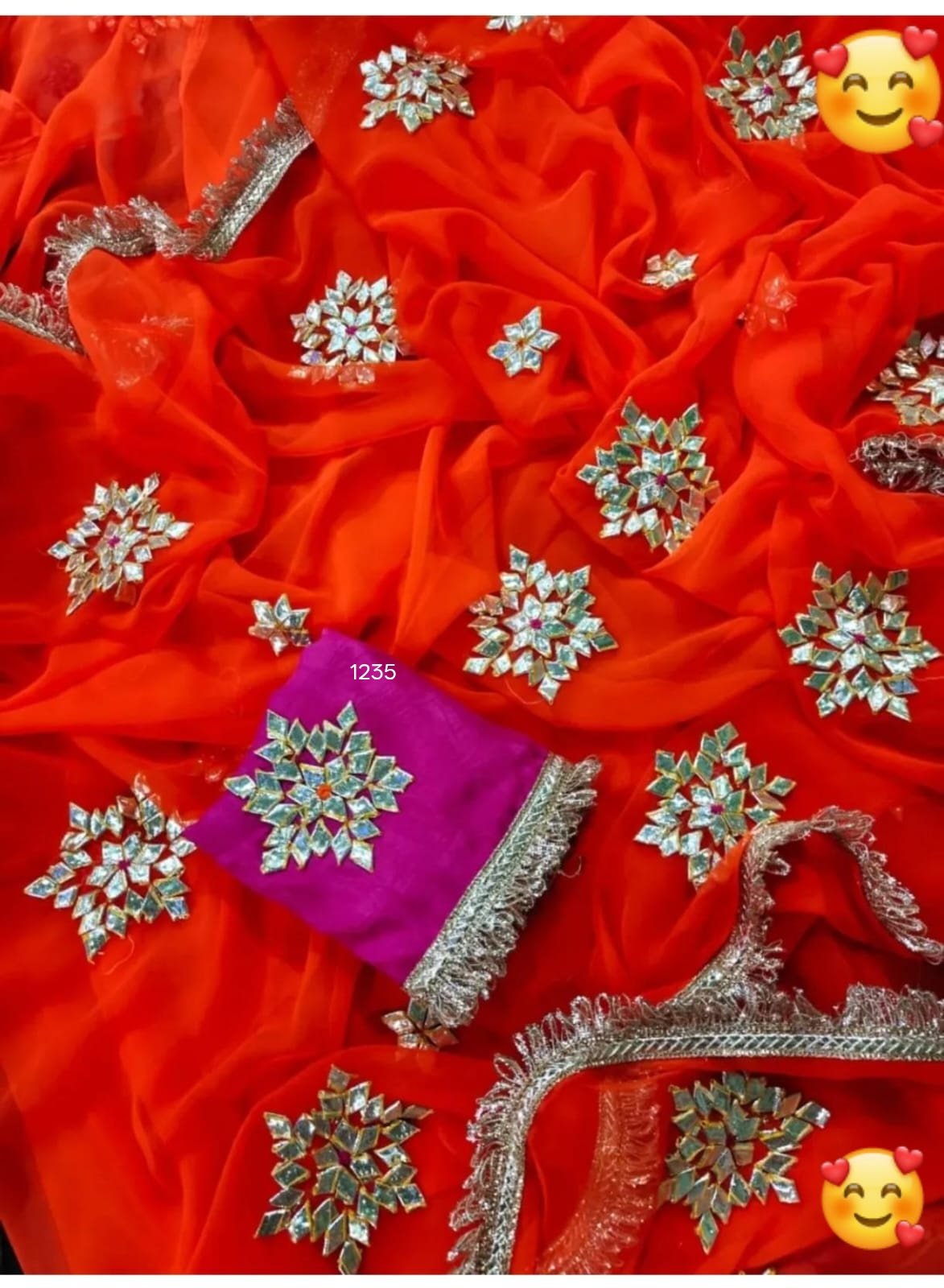 ✨ *New Premium Launch* ✨ *Soft Georgette Saree With Sober Gota Flower Work & Sabhya Soft Georgette Saree With Simple Sober Gota Flower Work