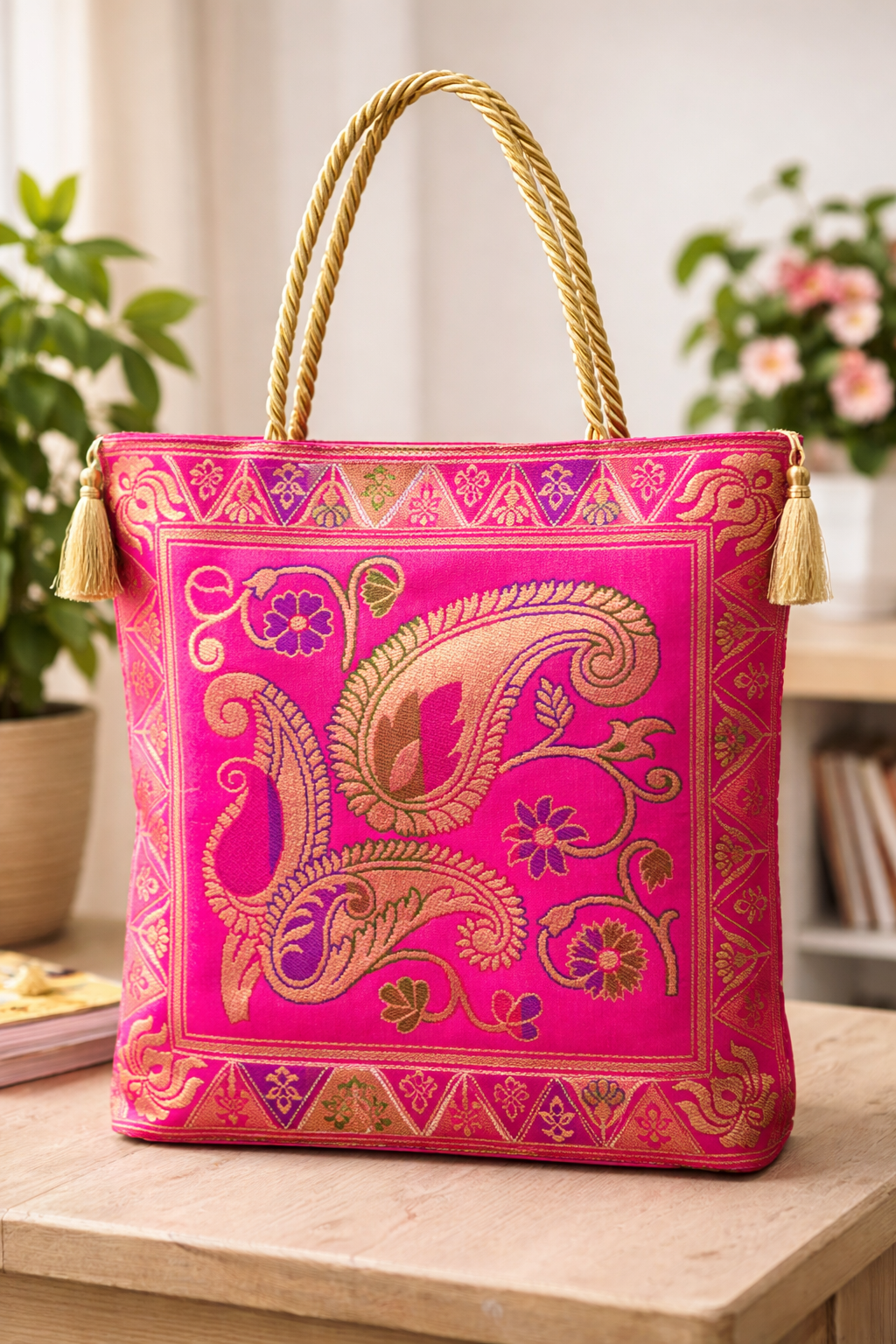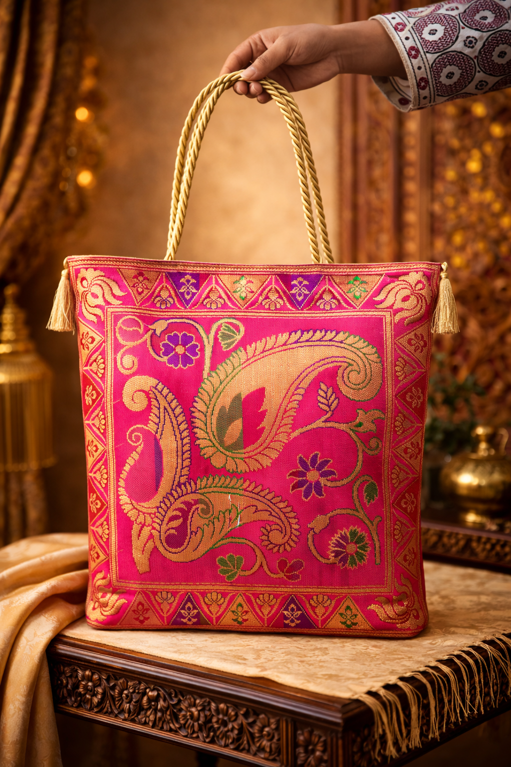 Premium banarasi silk Handbag for women and girls.