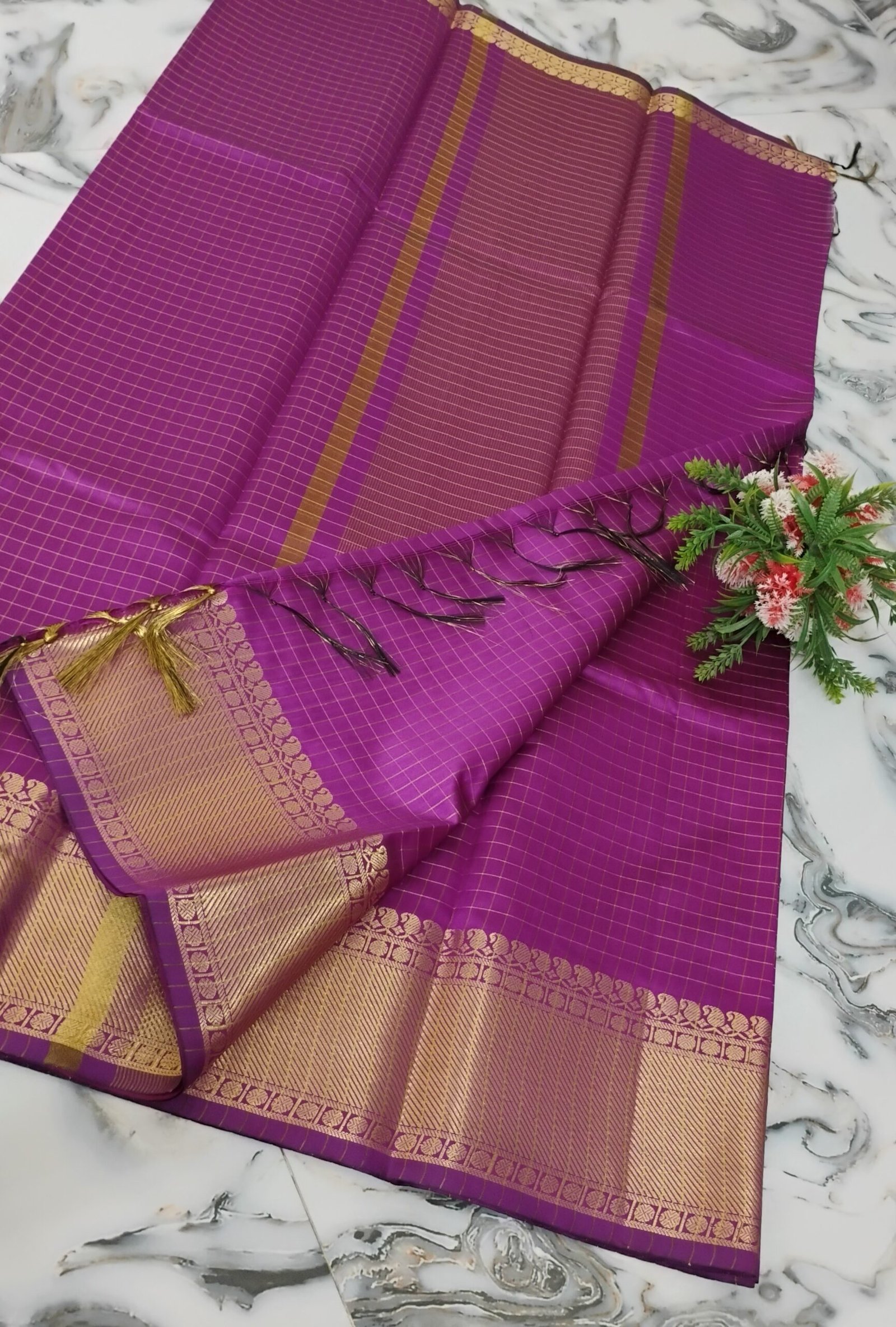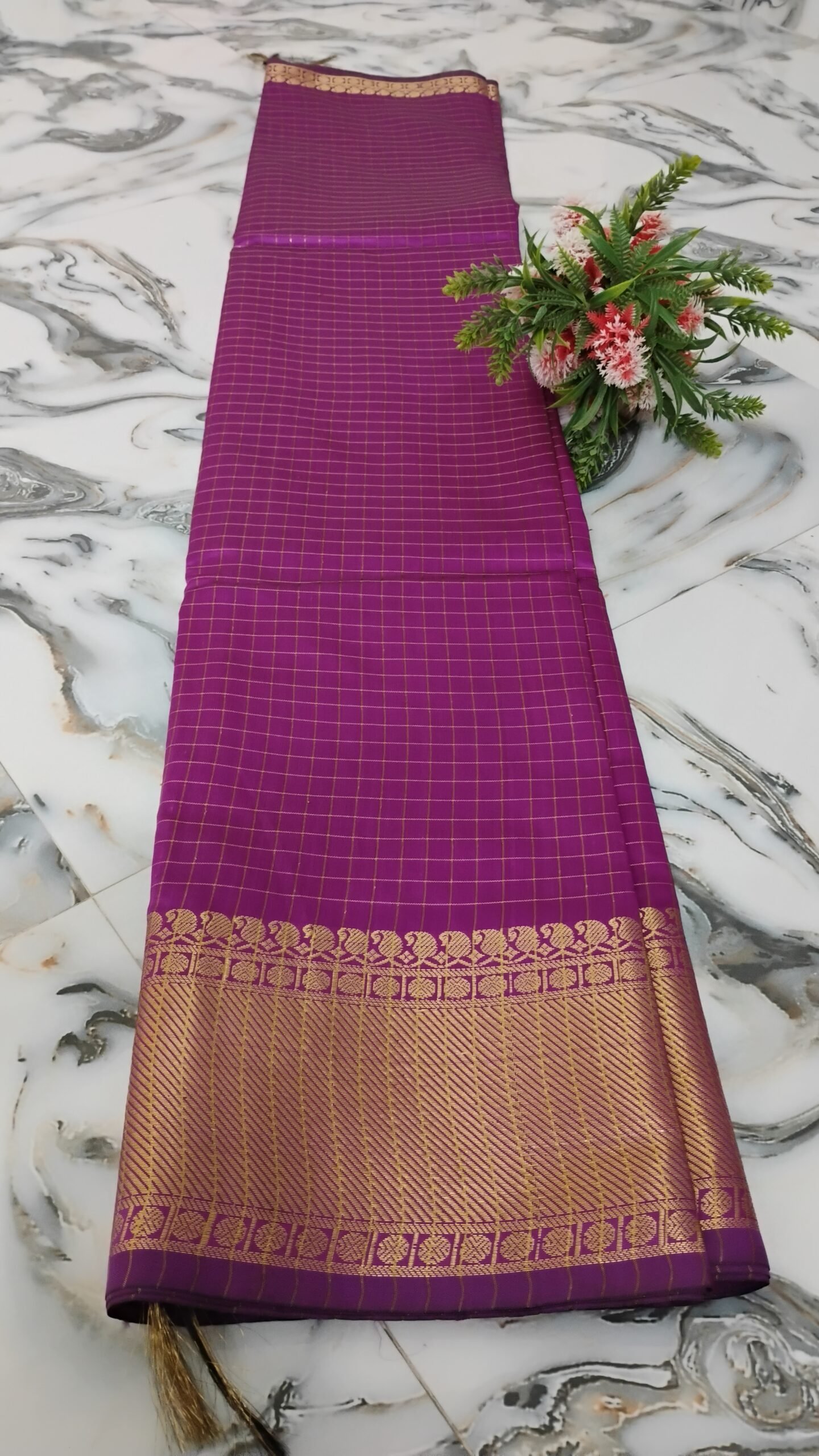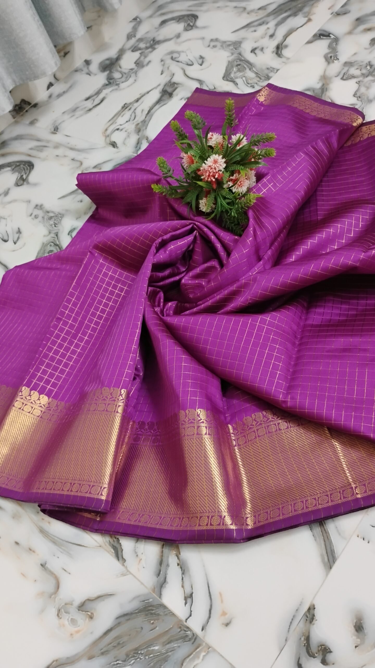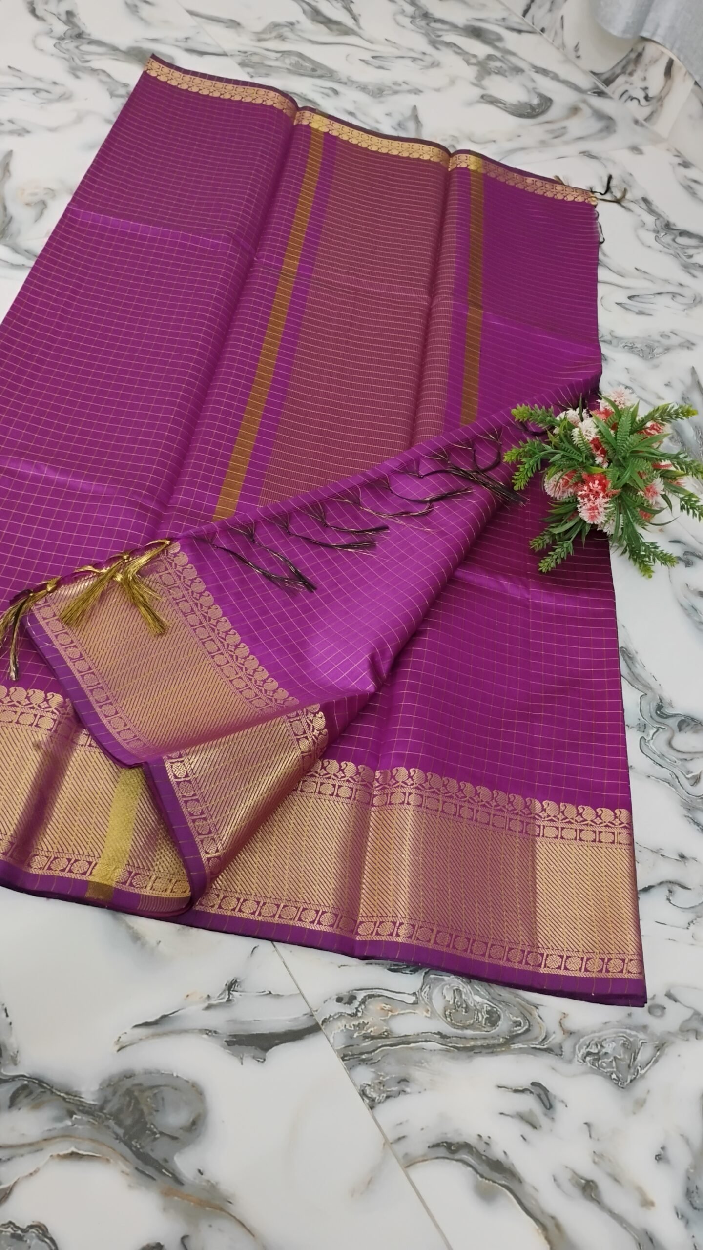 New trending Elegant purple silk blend saree with golden zari border and stylish tassels on pallu. Soft, lightweight and perfect for festive, wedding and party wear. Comes with matching blouse piece. Rich traditional look Saree length : 5.5 m Blouse : 0.8 m For details and buy @ 7455915860 No shipping charge Online payment only