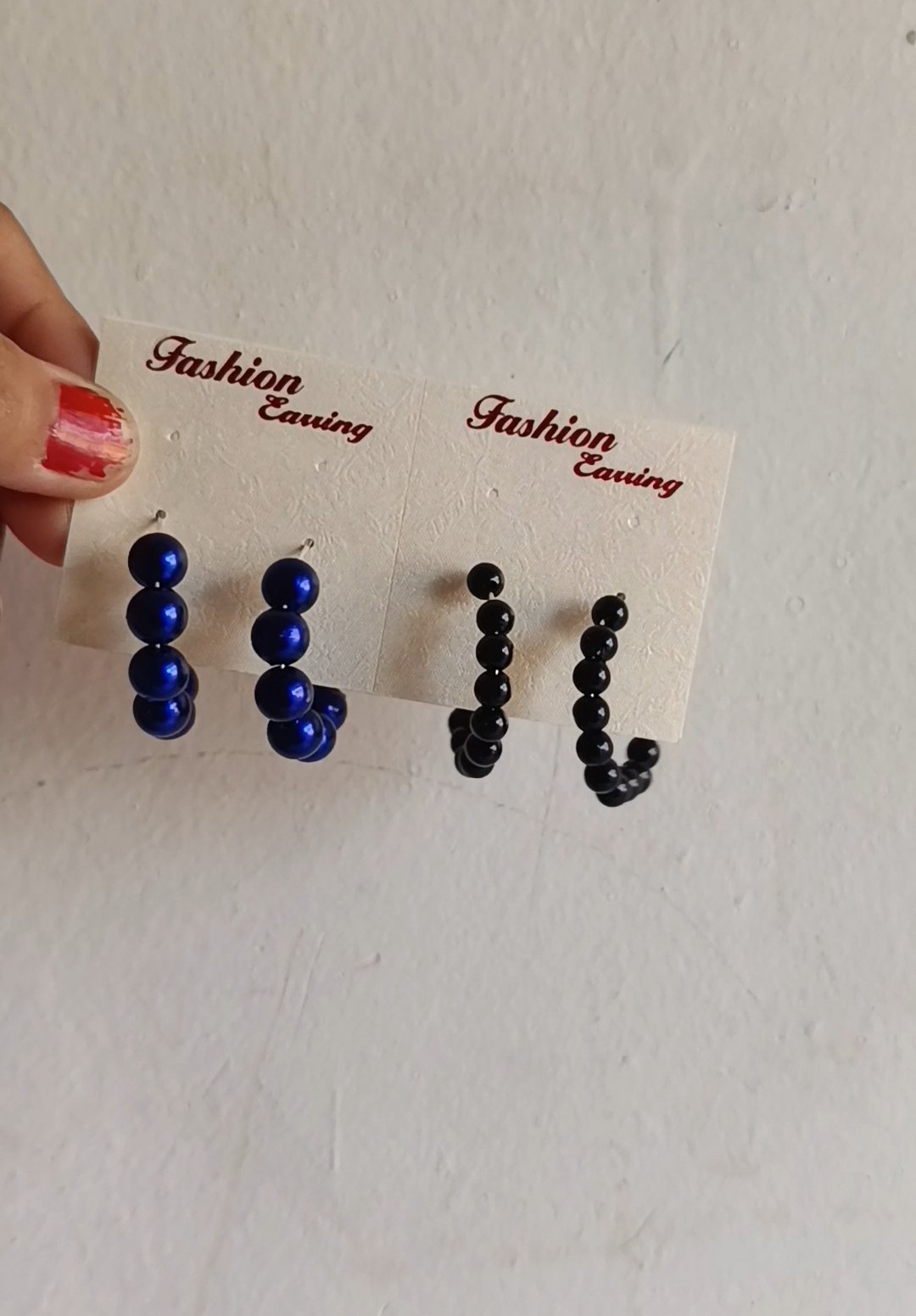 Be the first to review “Blue black beads hoops earring set”
