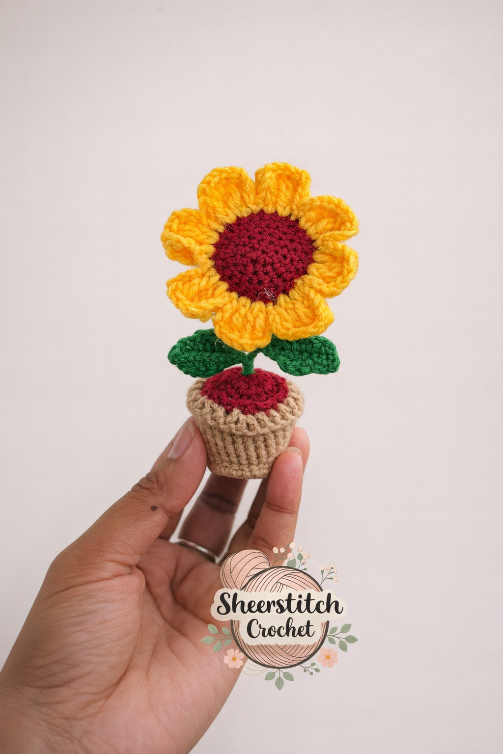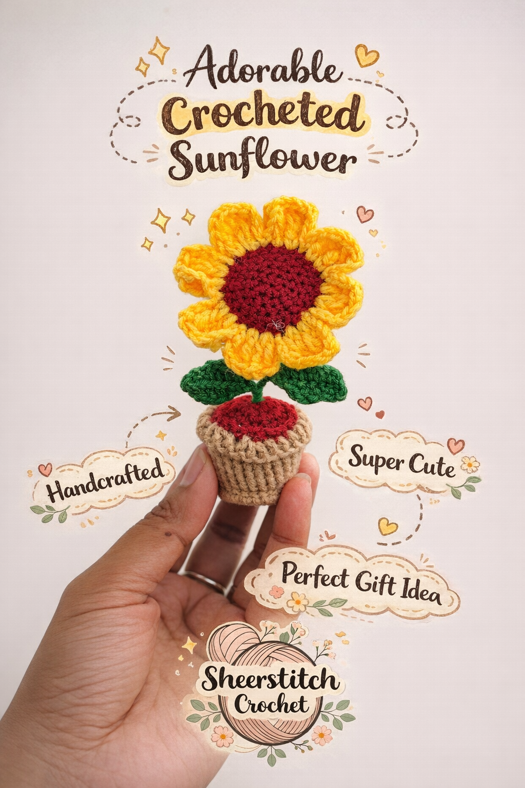 Brighten up your space with our adorable Crochet Mini Sunflower Pot, a perfect blend of charm and craftsmanship. Carefully handmade using soft, high-quality yarn, this tiny sunflower brings a touch of sunshine wherever it sits—no watering needed!