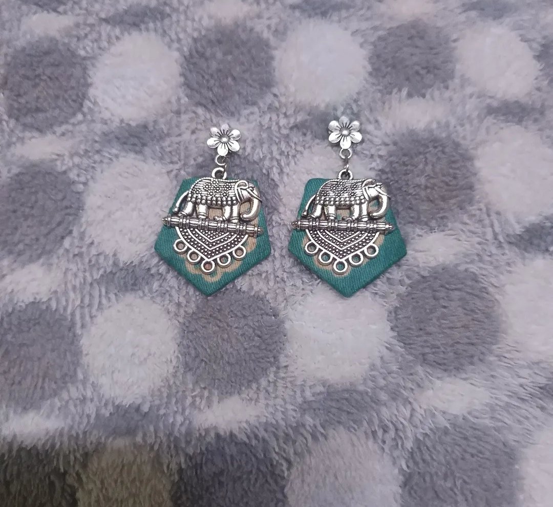 AV Homemade jewellery fabric and elephant charms earring