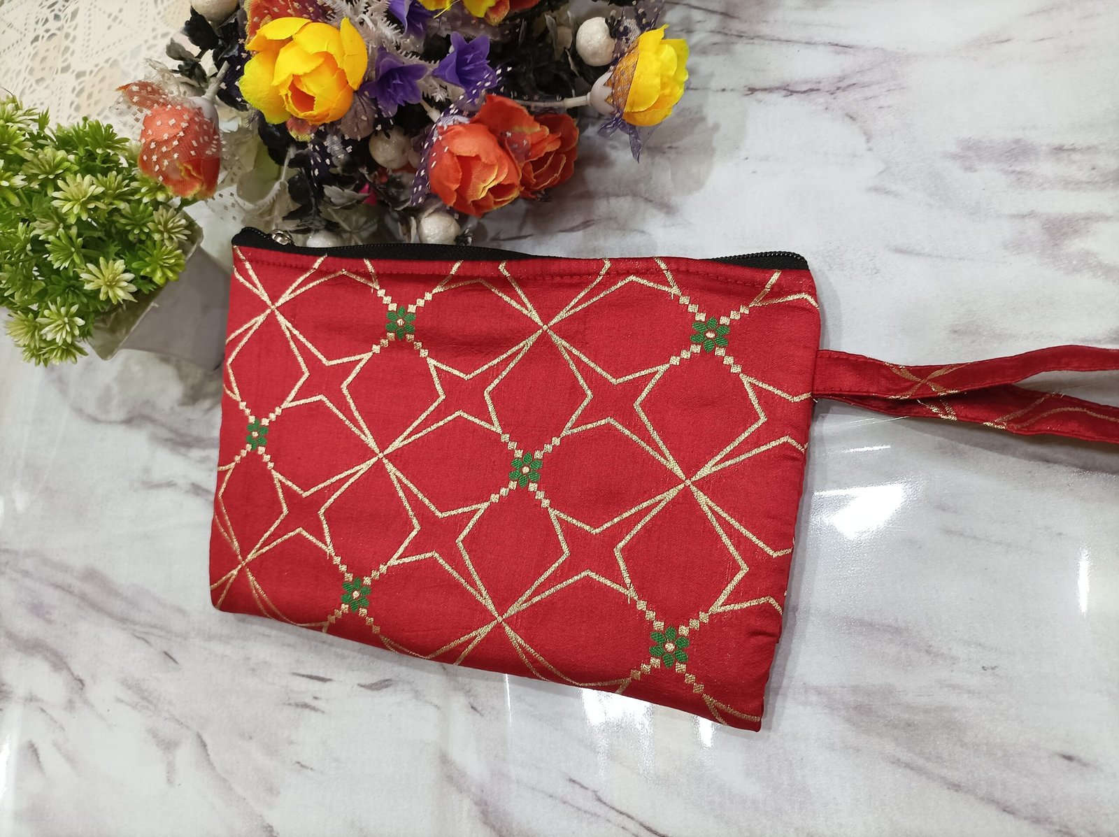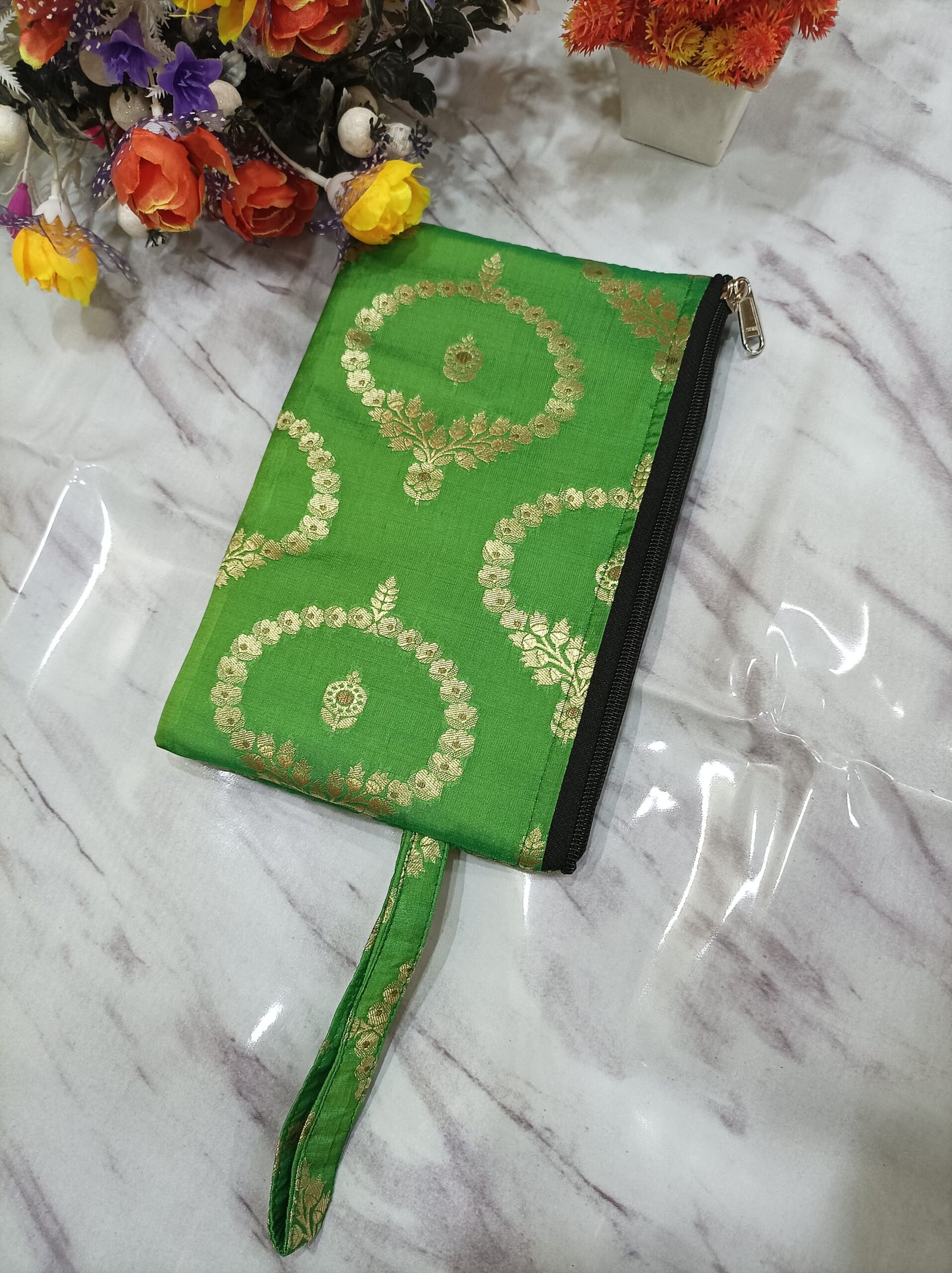 1. This is a handmade clutch bag with a zip it is a stylish easy to carry and useful for keeping  small items