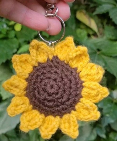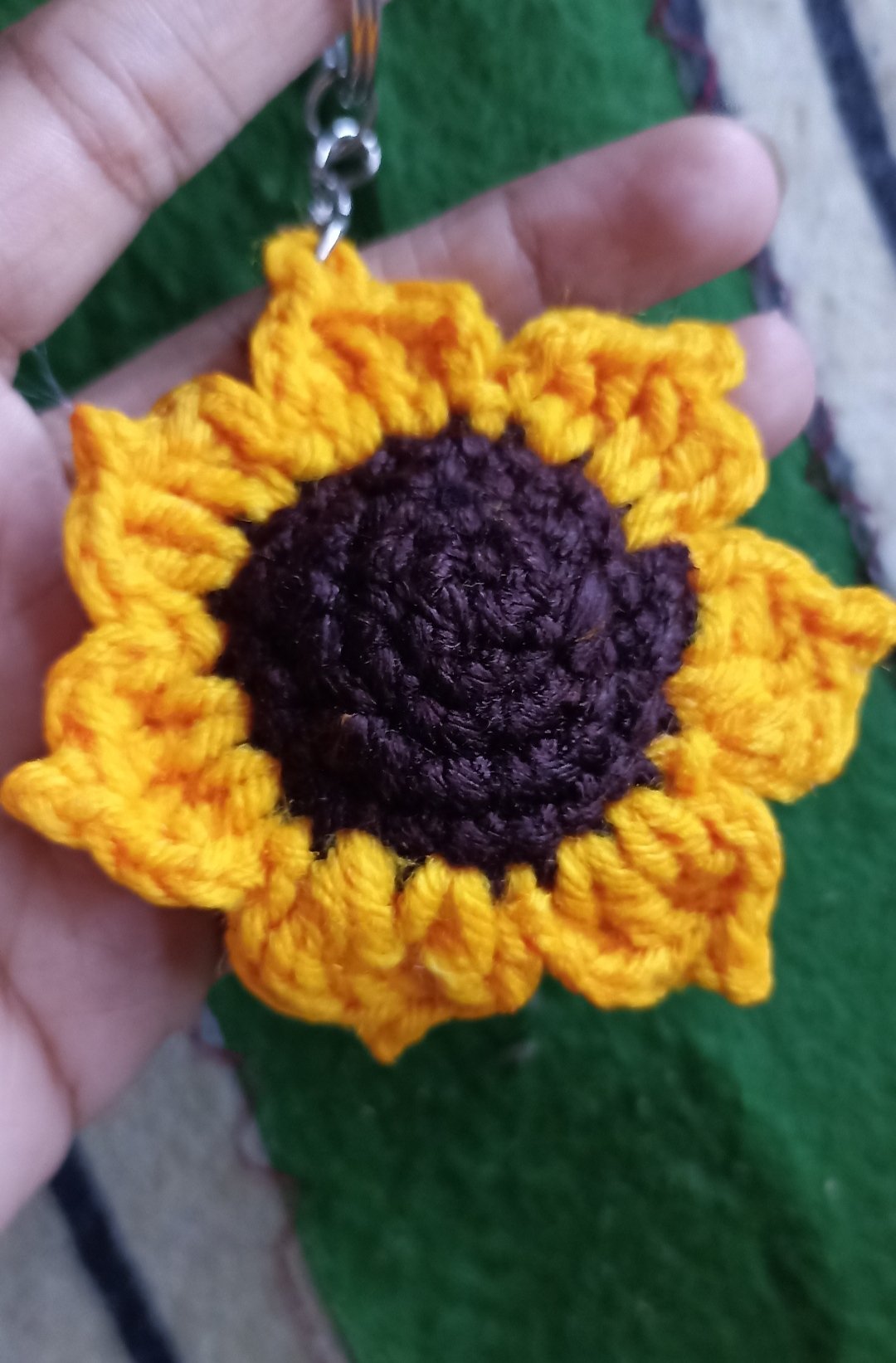 Beautiful Crochet handmade sunflower keychain,use to school, college bag keychain,car keychain.