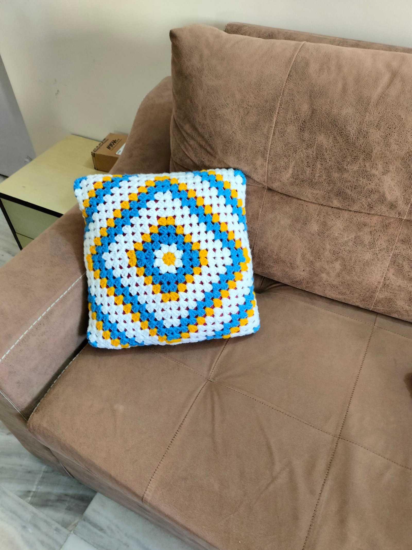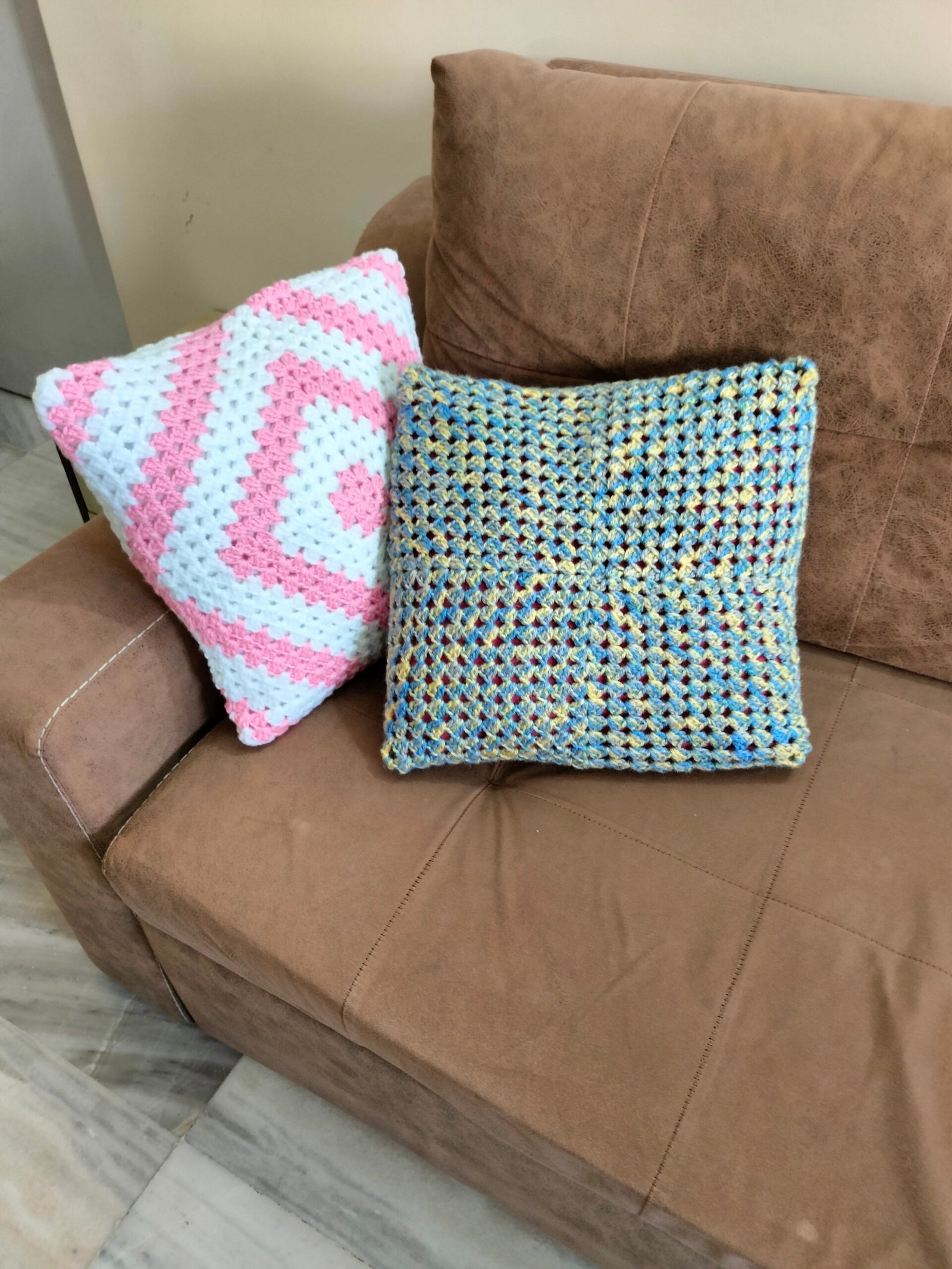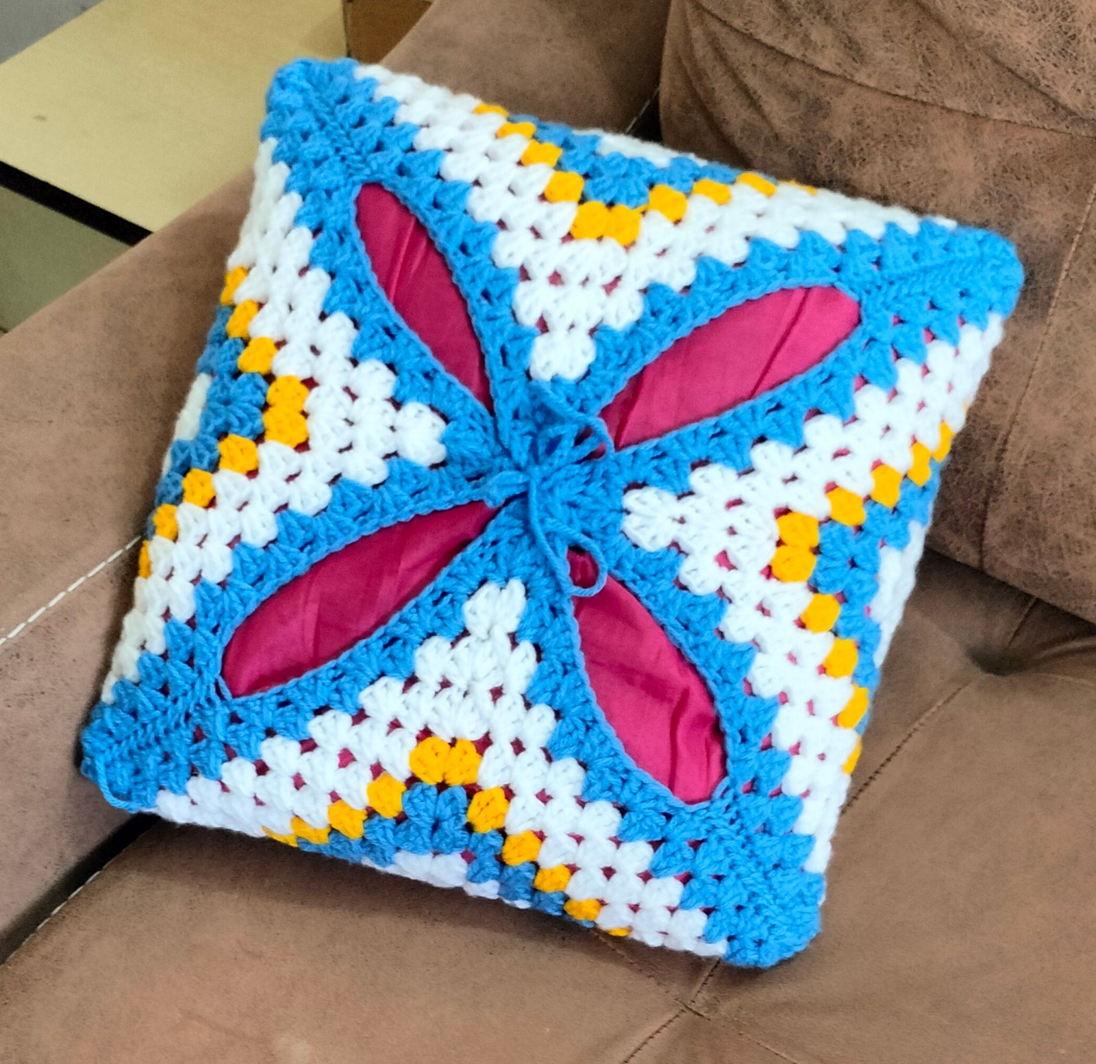 Add a pop of colour to your space with this vibrant, cozy handmade Acrylic yarn cushion cover . It also makes a lovely gift for special occasions. The back features a simple cord closure.