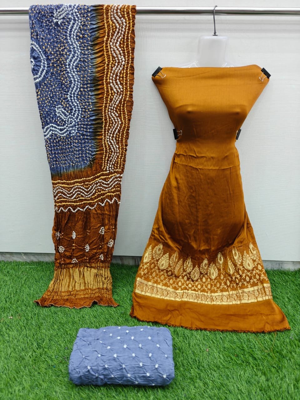 Pure modal silk top with nakshi border, pure modal silk dani bottom, pure modal silk dupatta