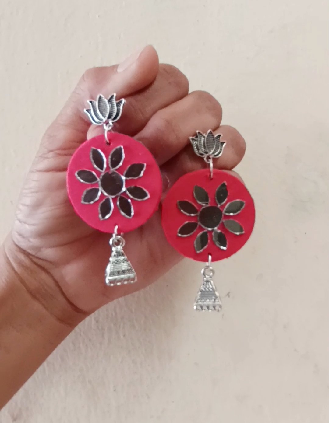 AV Homemade jewellery , pink fabric jhumka earring