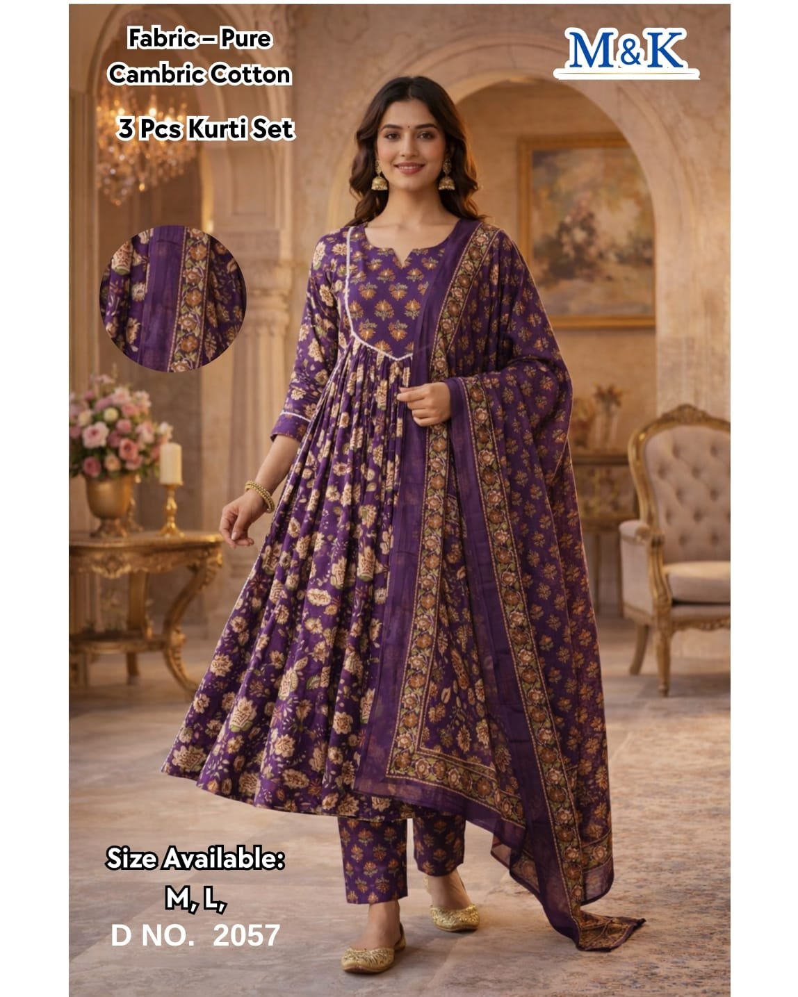 👖 Set: 3 Pcs Kurti Set (Kurti + Pant + Dupatta)