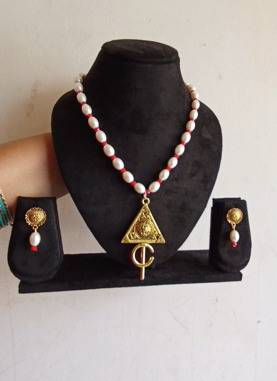 white pearls and golden pandnet necklace set